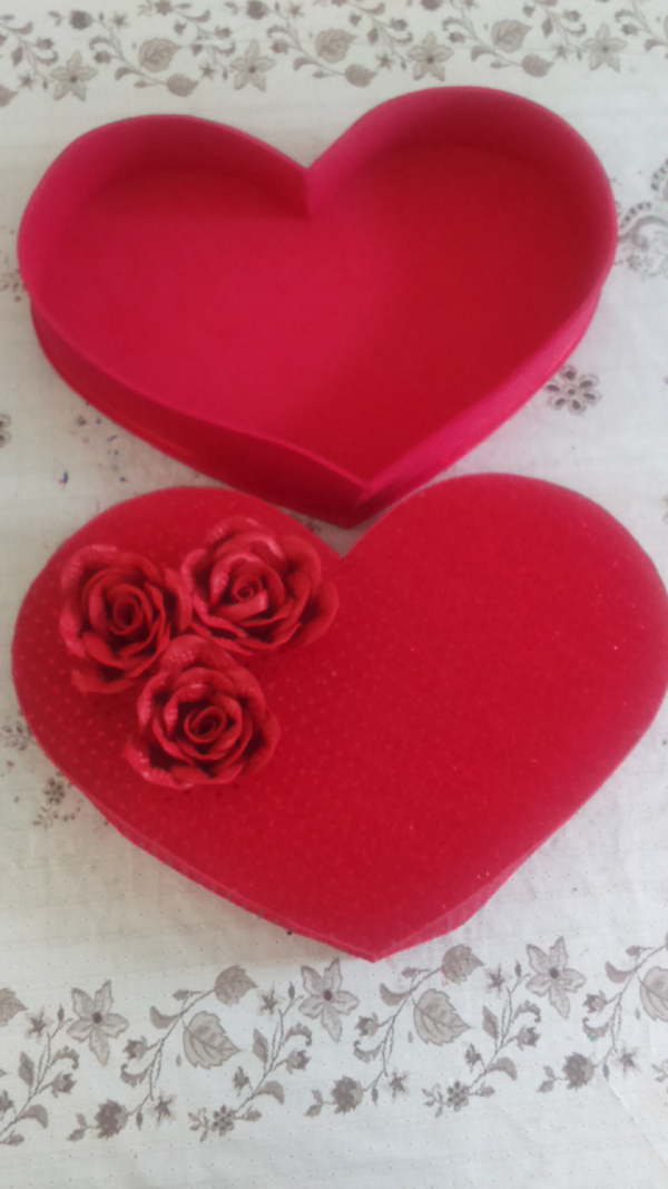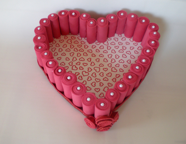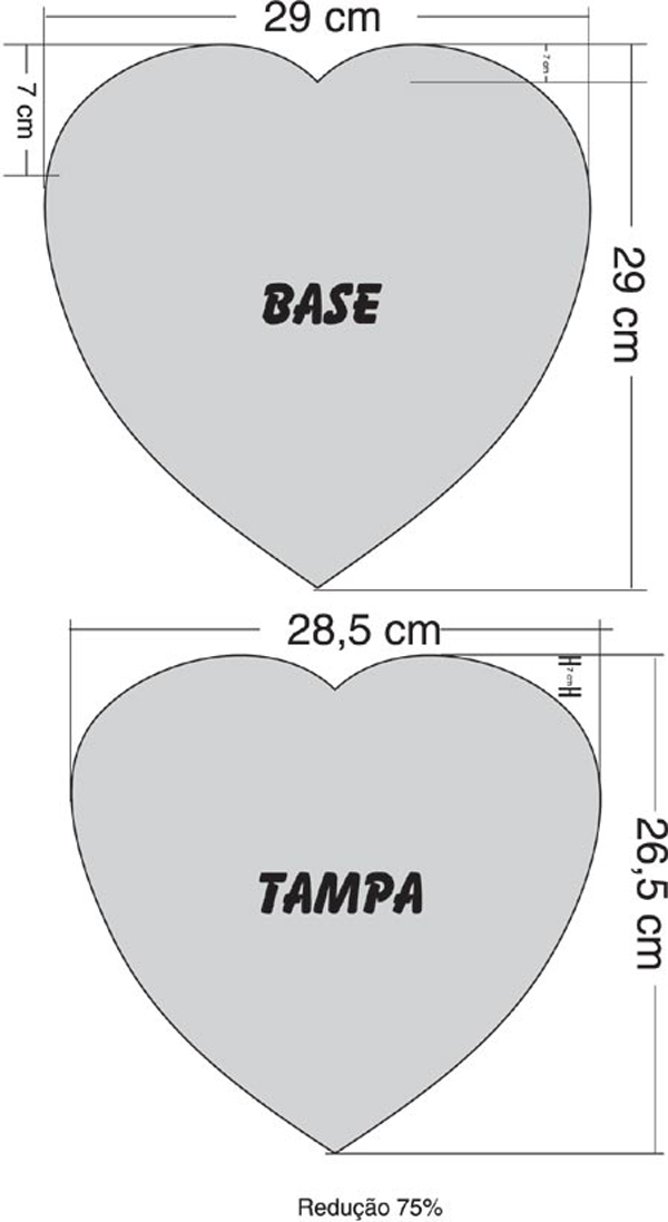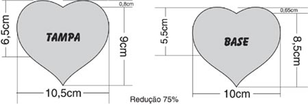 Artesanatos deixam alegres, felizes e satisfeitos quem os fazem. E estas sensações você pode desfrutar sem o menor receio, pois quanto mais você fizer artesanatos, mais satisfação você vai ter. A sua vida pode ser totalmente modificada pelos artesanatos, pois você pode usar o artesanato como atividade terapêutica, entretenimento e como fonte de renda. Que tal fazer no dia de hoje algum modelo de caixa com modelo de coração? Lembrando que a caixa em formato de coração grande pode ser feita como a pequena, basta você ampliar o molde ou a base da sua caixa.