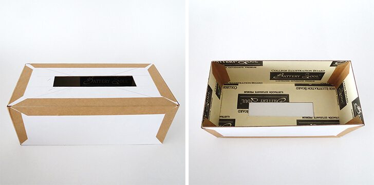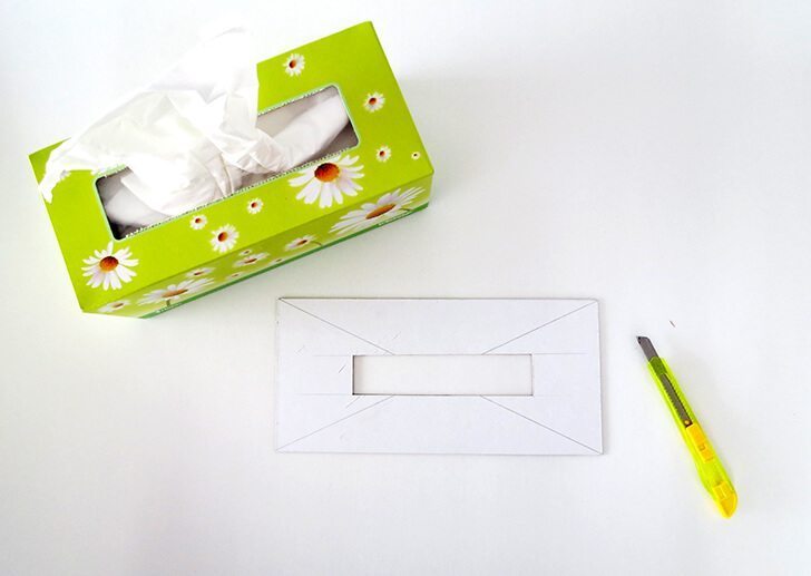 Meça, risque e recorte também as partes laterais da caixa de lenço. Também com um pouco de sobra para que esta parte montada por você se encaixe na caixa de lenço.
