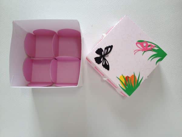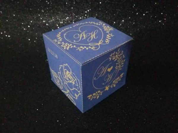 A caixinha para aniversário pode ser uma caixa de papel que possua uma imagem ou mensagem no fundo. Dobre os cantos de um quadrado de papel e acrescente o que desejar no meio deste quadrado, que será o fundo da caixa. A tampa também é feita da mesma maneira, mas com as abas devendo ser coladas.