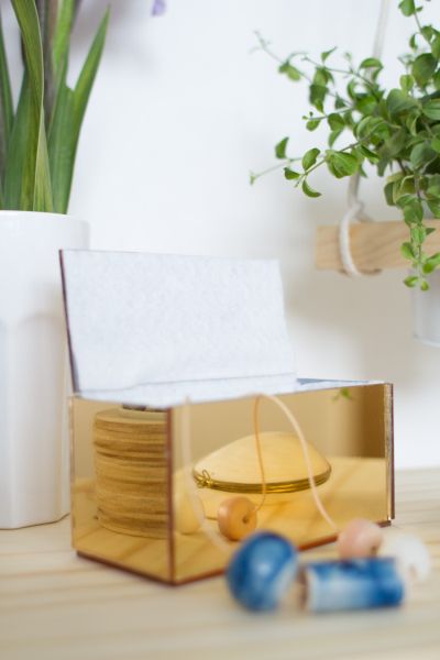 Logo após, para finalizar a sua peça, corte pedaços de feltro e cole dentro da caixa. E está pronto!