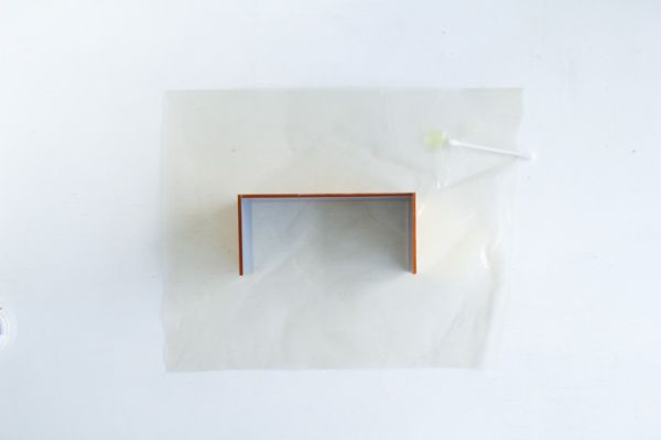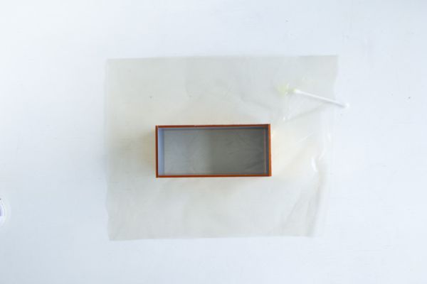 Em seguida, forre o local onde você vai trabalhar com as suas peças, com jornal velho, papel velho, papelão ou plástico. E posicione as partes de sua caixa sobre o local forrado e comece a aplicar a cola tudo em uma das partes que será a sua caixinha, com o auxílio do cotonete.