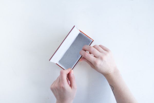 Em seguida, cole o pedaço de feltro juntando a caixa com a tampa.