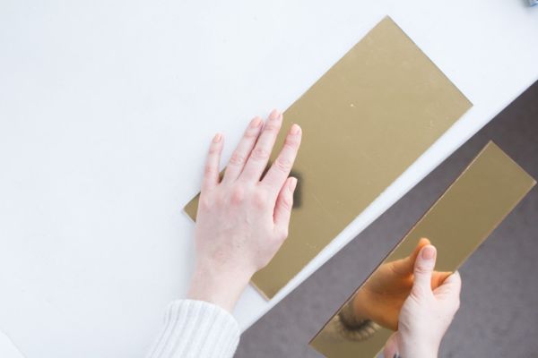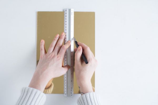 Em seguida, se você quiser cortar a placa espelhada, deixando-a menor ainda, meça e marque onde você vai cortar.