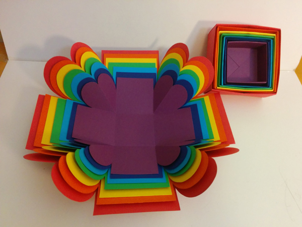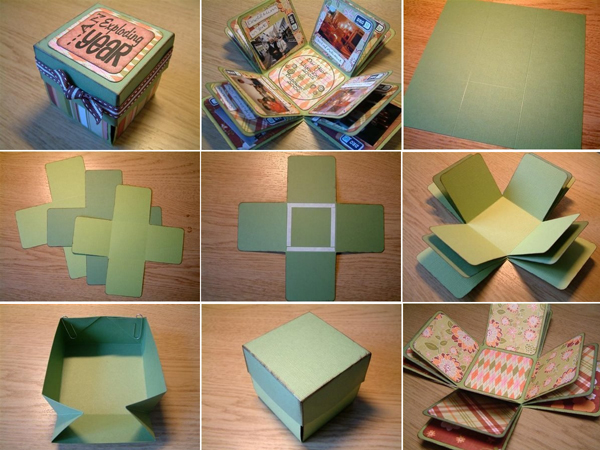 Comece separando todos os materiais que você vai utilizar no processo de desenvolver a sua caixa surpresa artesanal passo a passo. Risque e corte um quadrado em um dos papéis, com o tamanho que você desejar. Dentro deste quadrado risque 9 quadrados. Corte os cantos, formando uma “cruz”. Faça três peças. Cole uma peça sobre a outra, usando fita adesiva dupla face ao redor do centro. Para fazer a tampa, risque um quadrado um pouco maior que o primeiro e desenhe os 9 quadrados dentro. Porém, não corte os cantos, dobre-os para dentro. Cole todas as abas. Decore as partes da caixa com o que você quiser. Se você desejar, coloque algum produto no meio da caixa, como um bombom. Para finalizar a sua peça, feche a caixa e amarre um pedaço de fita ao redor da tampa da caixa. E está pronto!