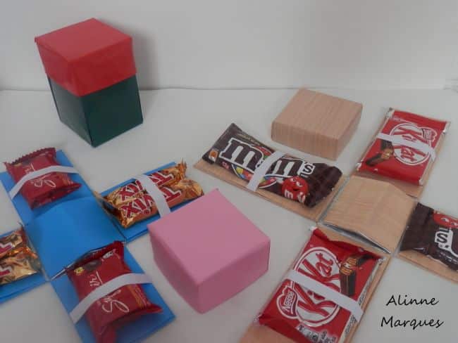 Além de produtos você pode colocar frases dentro da caixa. As mais comuns são colocadas no chocolate Bis.