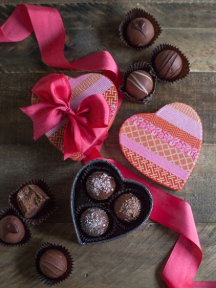 Para finalizar, faça um laço bem “fofo” com a fita larga para presente, fixe na tampa da caixinha, com o auxílio da cola quente, acomode os bombons dentro da caixinha e está pronto!
