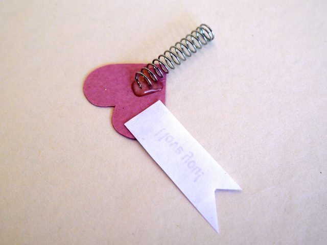 Corte um pedaço da mola e cole-a na parte detrás do coração, com o auxílio da pistola de cola quente.