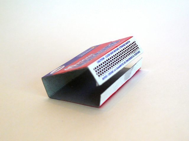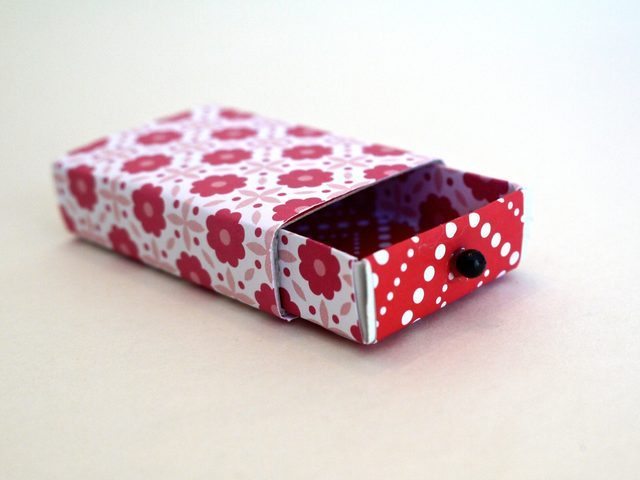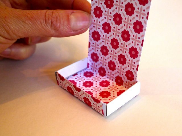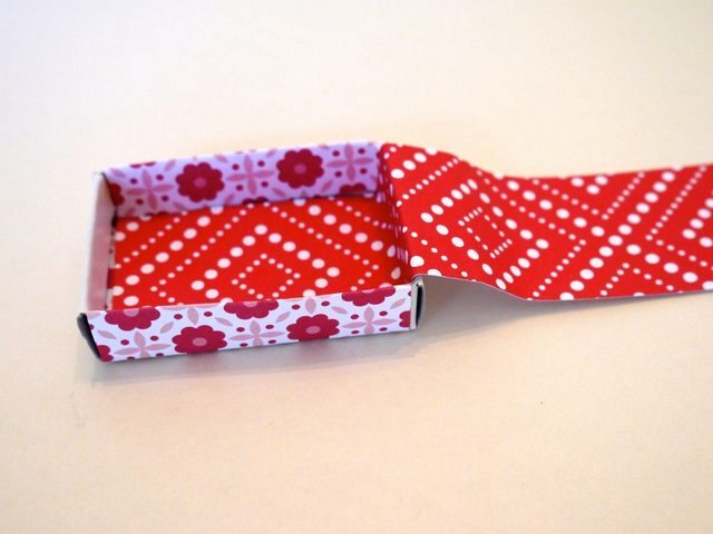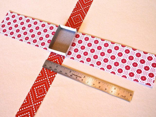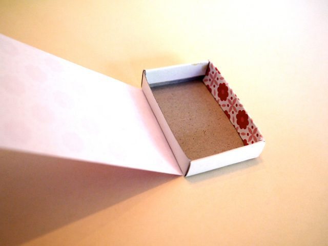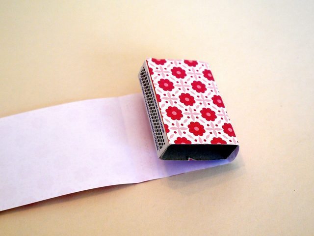 Meça o tamanho da parte interna da caixa de fósforos e corte tiras de papel.