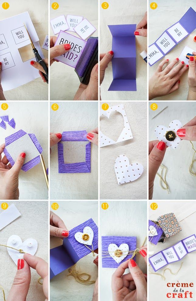 Créditos:http://www.cremedelacraft.com/2013/07/DIY-Will-You-Be-My-Bridesmaid.html