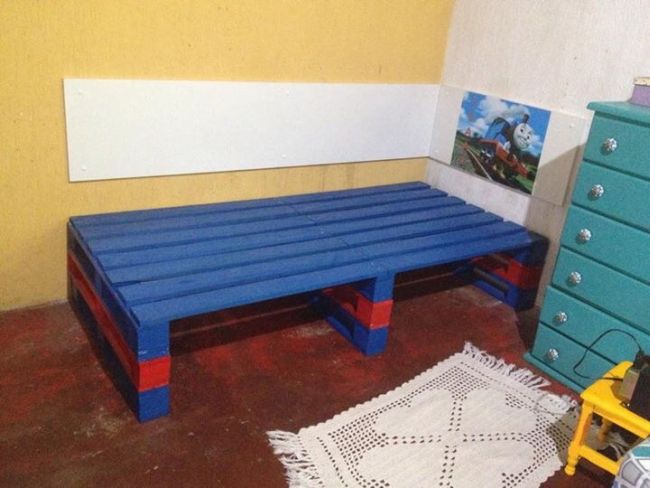 Para crianças menores é sempre bom colocar uma proteção lateral na cama, com a madeira do palete mesmo.