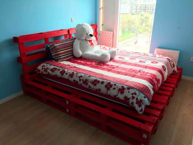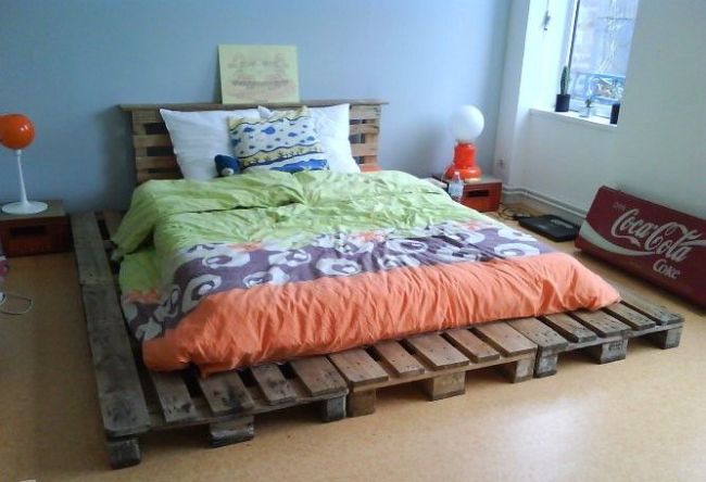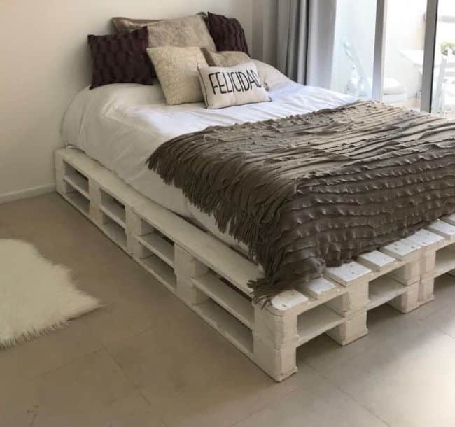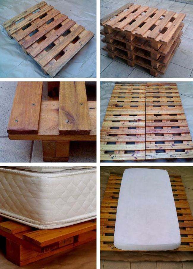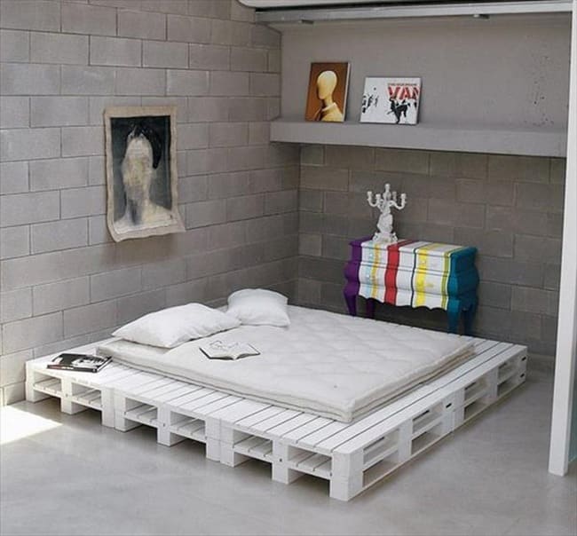 O palete, portanto, é ótimo para camas baixas e você pode ainda usar paletes pequenos, nas dimensões do colchão, aproximadamente, ou deixá-los ainda mais baixos.