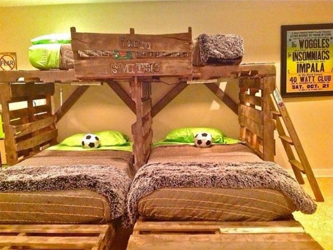 13 – Opção de cama de palete com ninhos para organizar os calçados