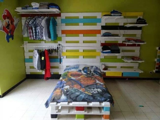 E para completar a decoração do quarto ainda pode fazer um lindo guarda roupa com paletes de madeira.