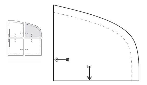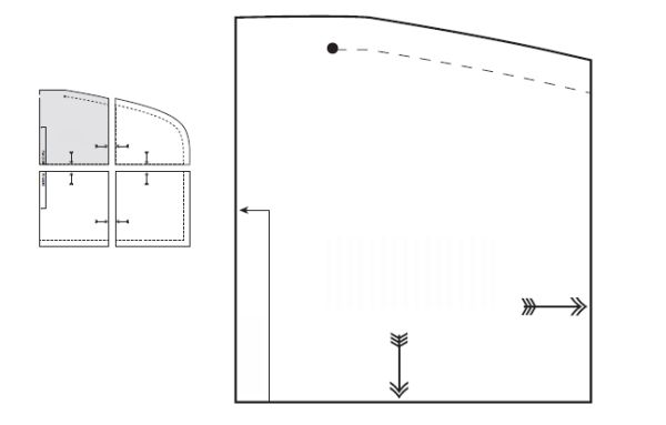 Comece transferindo as partes do molde para os respectivos tecidos. Depois costure a parte de cima, mas deixando uma abertura para você posicionar o cabide posteriormente, e faça piques ao redor da parte arredondada.