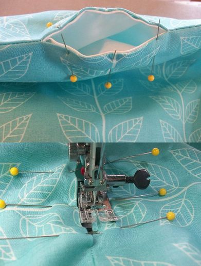 Em seguida, posicione o forro e a parte de fora juntos e costure à máquina a abertura.