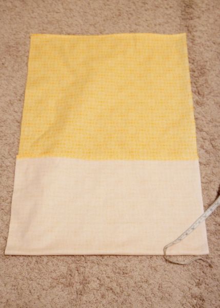 Agora, posicione o forro de sua almofada sobre o tecido e dobre a outra ponta do retângulo por cima da primeira, para que as partes fiquem transpassadas. Deixe a peça com o tamanho da almofada e prenda as laterais com o auxílio dos alfinetes para costura.