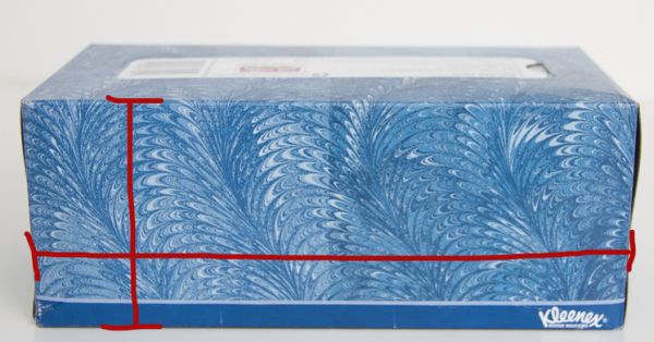 Comece medindo a caixa de lenço em todas as partes e acrescente 0,6 cm a cada uma dessas partes para dar à capa um espaço de acomodação para caixas com partes levemente desiguais.