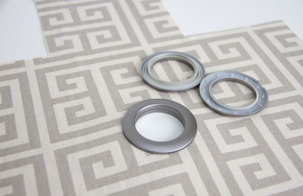 Agora, marque o tamanho do ilhós no centro do tecido cortado anteriormente e corte o círculo de tecido e una as duas partes do ilhós ao redor da abertura criada.