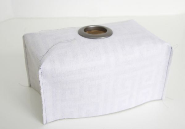 Em seguida, una as bordas dos cantos e costure sua capa em formato retangular usando uma margem de costura de 0,6 cm. Assegure-se de começar a costurar pela parte central da capa e ir trabalhando em direção à borda inferior da capa. E teste na caixa para ver se está tudo certo. Se estiver, faça um zigue-zague nas sobras para não desfiar.