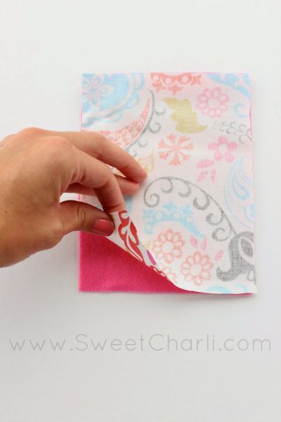 Em seguida, posicione o lado do direito de cada parte de plástico sobre a parte de feltro. E passe uma costura reta na parte de cima.