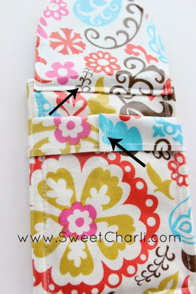 Agora, para finalizar a sua peça, costure esta aba na parte detrás de seu case e costure uma tira de plástico ao redor do seu case, para você prender a aba quando for fechar. E está pronto!