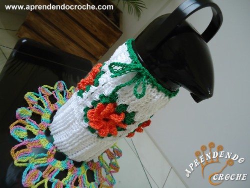 Capa para garrafa térmica em crochê passo a passo