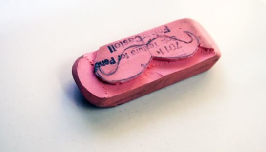 Comece desenhando um bigode na borracha, com o auxílio do lápis.