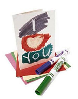 Para fazer este divertido cartão você irá precisar de: cartolina ou outro papel estruturado, para fazer o cartão, mas com cor branca; giz de cera branco; e marcador colorido.