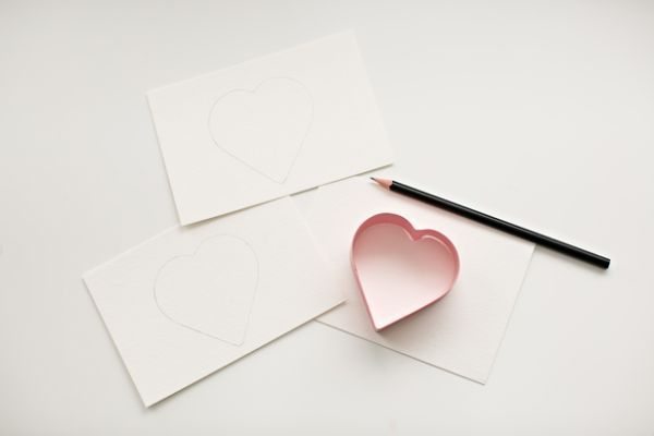 Comece separando todos os materiais que você vai utilizar em seu artesanato. Depois transfira o molde de coração para o papel estruturado que irá ficar na capa. Você pode fazer o bordado diretamente na capa do cartão ou pode fazer o coração bordado em um papel à parte e depois colar na capa de um cartão. E este cartão pode ser feito também por você, dobrando um pedaço de papel estruturado ao meio.
