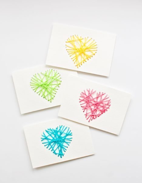Créditos:http://www.hellowonderful.co/post/MAKE-STRING-HEART-YARN-CARDS