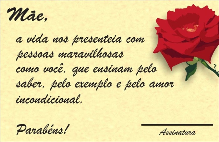 Além de um presente ou de uma lembrancinha, acrescentar um cartão ao que é oferecido à sua mãe é ótima alternativa para incrementar os desejos benevolentes que você quer materializar para a grande mulher de sua vida. Apenas com um papel estruturado simples você já consegue criar um lindo e especial cartãozinho.