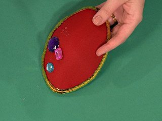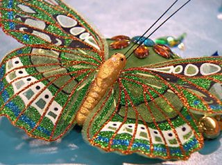 Logo após esta base estar pronta (a peça já está pronta, agora basta decorar) você deve começar a colar os enfeites e pedrarias da forma que você quiser, com o auxílio da cola quente, e finalize colando a borboleta ou o enfeite de sua preferência. E está pronto!