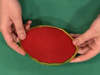 Em seguida, posicione as presilhas em formato de jacaré, uma de cada lado, por dentro no bojo. Aqui você pode colar com cola quente, mas se for preciso ou se você quiser deixar mais firme, costure com agulha de mão e linha de costura.