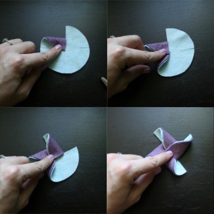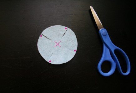 Faça um “X” no círculo de feltro, na parte que irá ficar por dentro, com cada parte devendo ter tamanho igual.