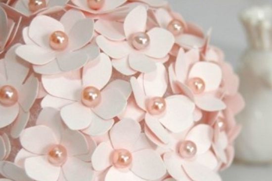 Para fazer este sofisticado centro de mesa você irá precisar de: recipiente para acomodar os enfeites; bolas de isopor (a quantidade vai depender do tamanho do recipiente que você irá usar como centro de mesa); papel estruturado rosa ou EVA fino rosa; alfinetes com cabeça de pérola também com a cor rosa; e tesoura.