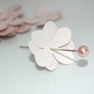 Comece cortando as flores de papel ou de EVA fino rosa (aqui você pode cortar as flores com o modelo que você quiser). Mas faça antes o desenho da flor em um papel, para que este seja o seu molde e depois corte as outras flores a partir deste molde. Se você seguir o modelo apresentado aqui, lembre-se que você irá precisar de duas “flores” para formar um item do enfeite. E com todas as flores cortadas você deve usar duas flores, posicionando as pétalas de forma intercalada e penetrando no centro da flor um alfinete.