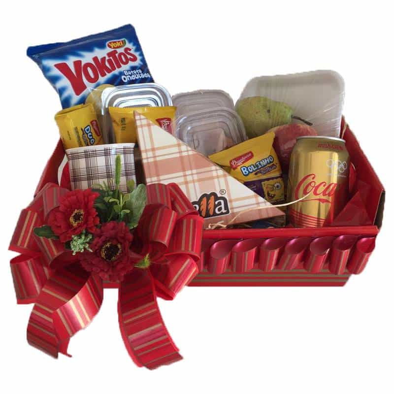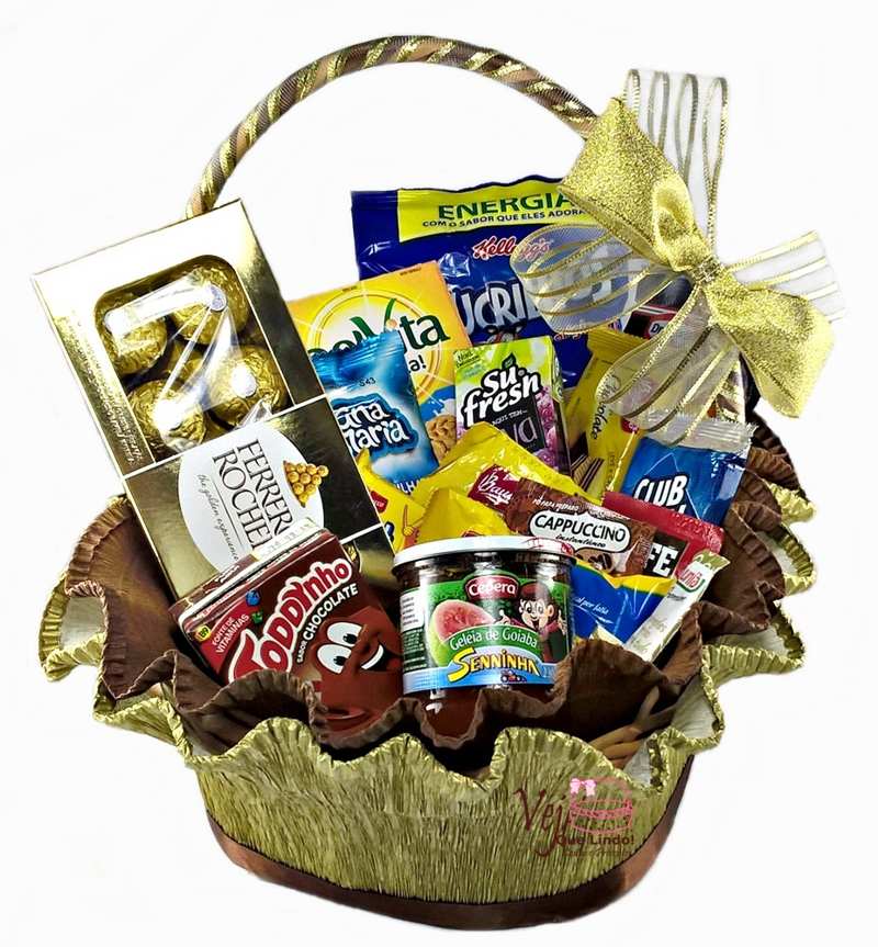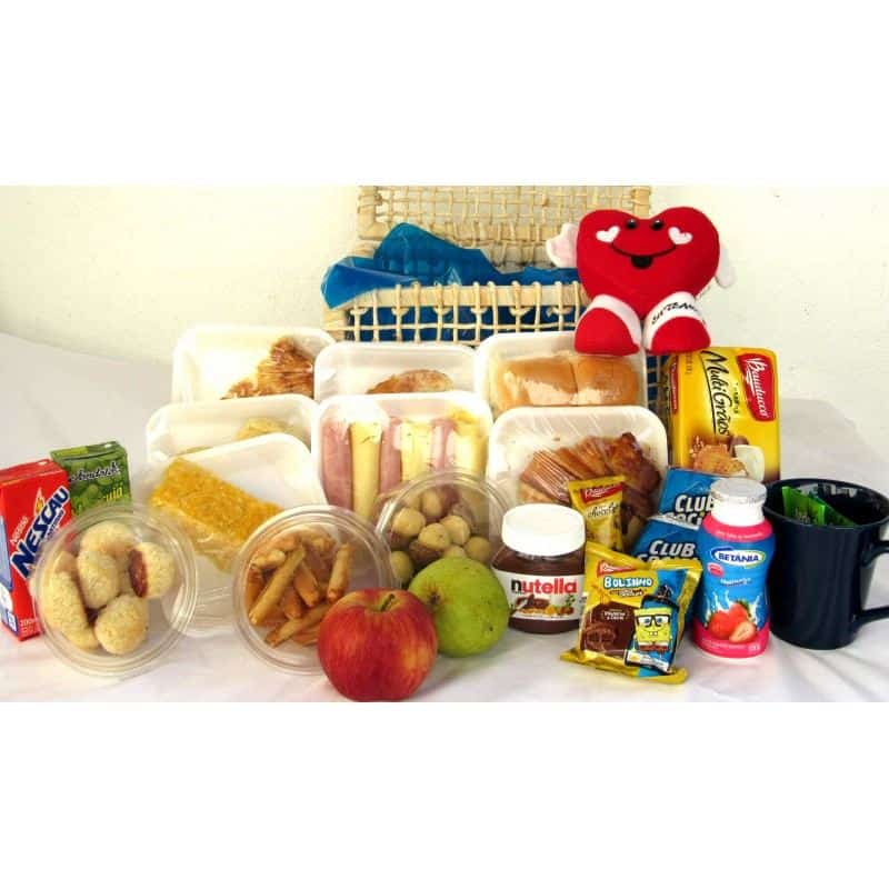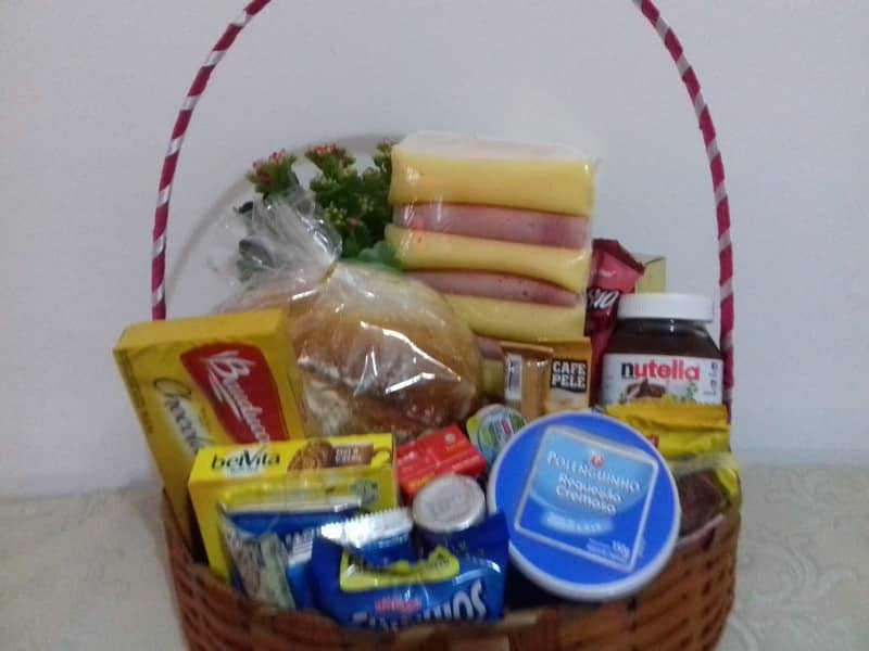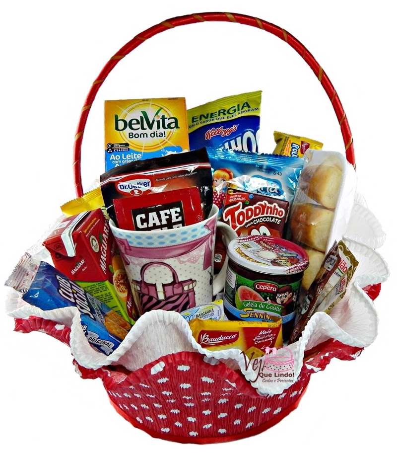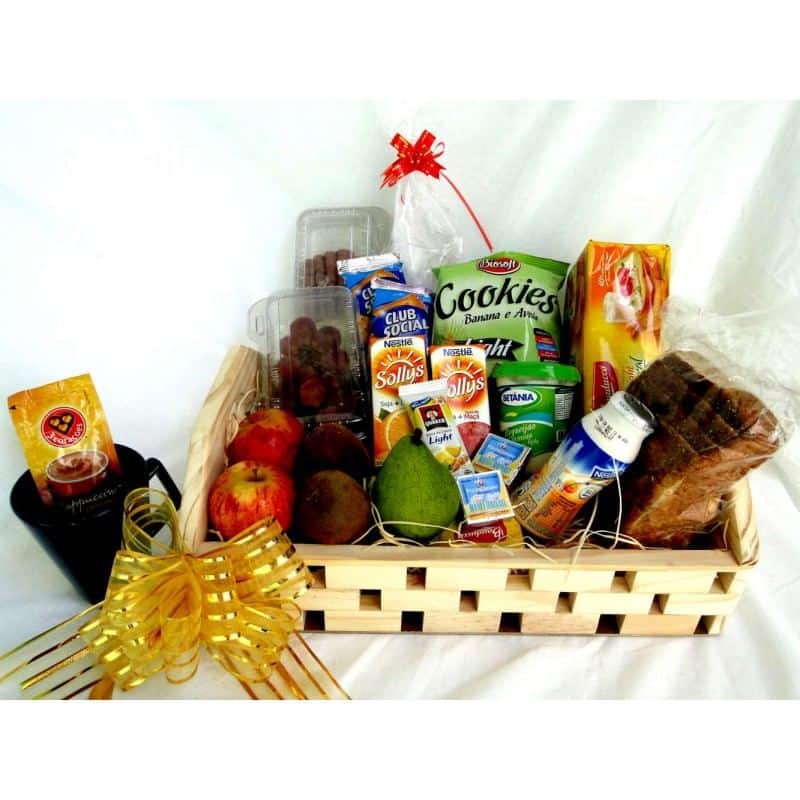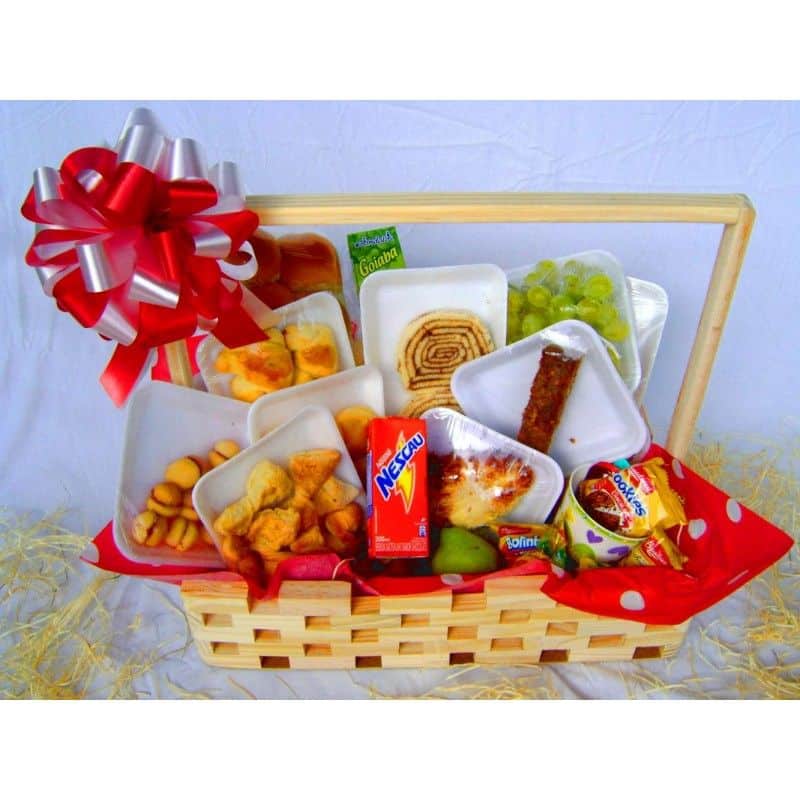 A sua cesta deve ter os itens comuns para o café da tarde, como: pães, bolos, bolachas, cafés, chá, leite, iogurte, frutas, frios, biscoitos, sucos, torrada, pão de queijo, geleia, manteiga, requeijão, queijos, pão de mel, refrigerante, salgadinhos, tortas. E você pode colocar dentro da cesta alguns alimentos e bebidas que o seu presenteado gosta, mas que normalmente não faz parte da cesta, como coxinhas, por exemplo, uma paixão nacional.