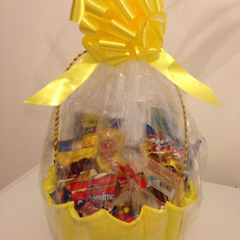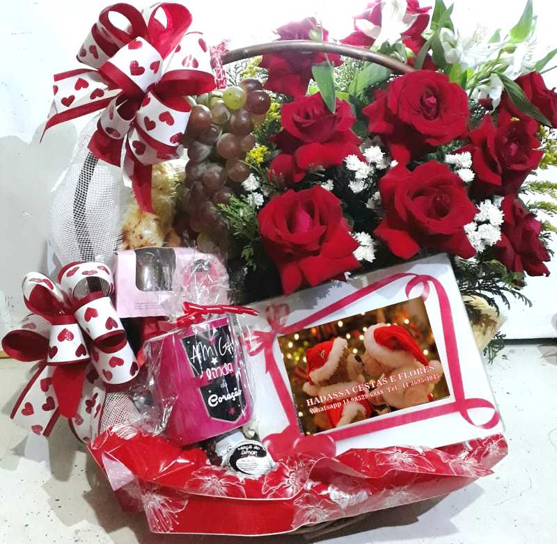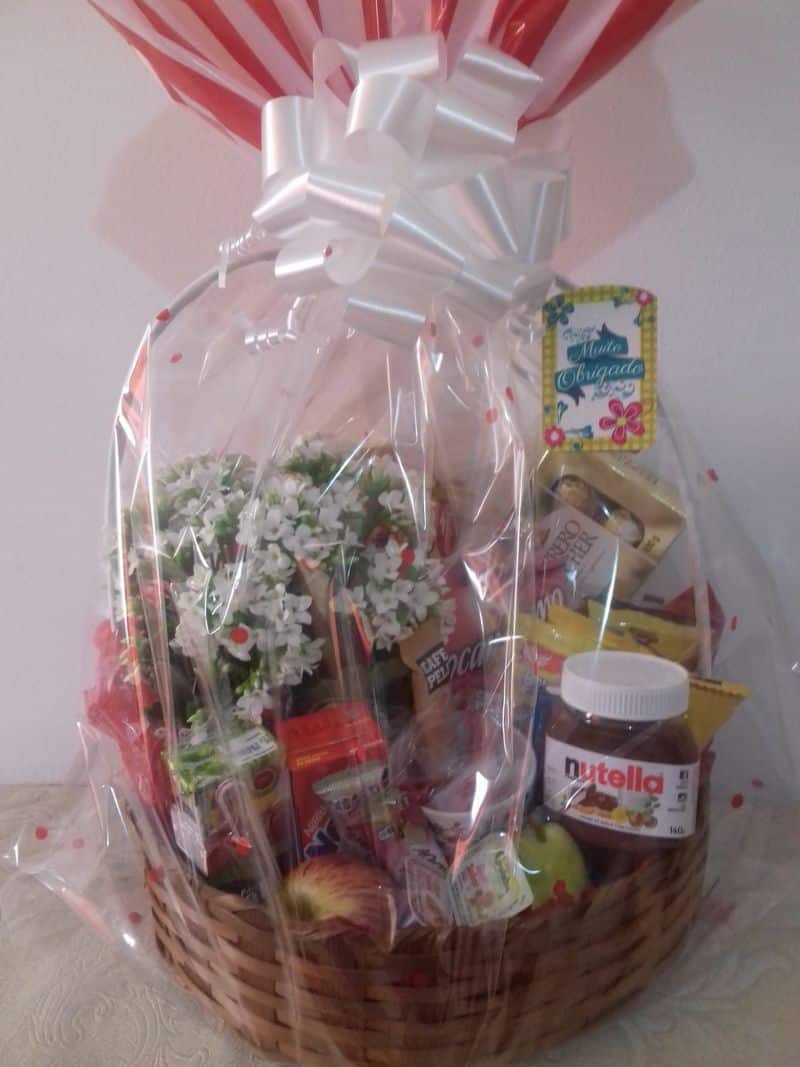 Você também pode colocar em sua cesta bichinhos de pelúcia, flores, coração de pelúcia, canecas, xícaras, brinquedos ou o produto quer você desejar.