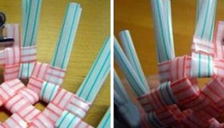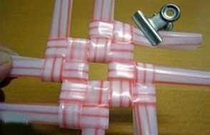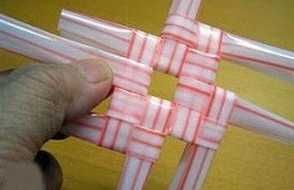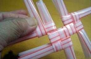 Em seguida, trance pelas laçadas dos canudos mais dois canudos.