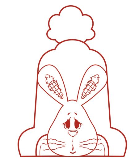 Logo após, com o auxílio do pincel fino, e utilizando a cor canela, faça traços em xadrez na cenoura. Com a tinta de cor oliva, faça o xadrez nas folhas. Com a tinta de cor branca, faça uma meia lua no focinho do coelho.