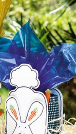 Para fazer esta simpática cestinha você irá precisar de: placa de EVA branca; garrafa PET; tecido de algodão xadrez (20 x 30 cm); prendedores decorativos com tema de Páscoa; tinta PVA nas cores laranja, canela, branca, primavera e oliva; pincel chanfrado ¼; pincel liner 10/0; caneta permanente preta; caneta esferográfica de ponta fina preta; cola quente; régua; tesoura; papel-carbono; água para limpar o pincel; e molde (imagem a seguir).