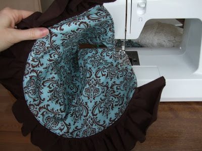 Agora, costure o babado na parte menor, da mesma maneira.