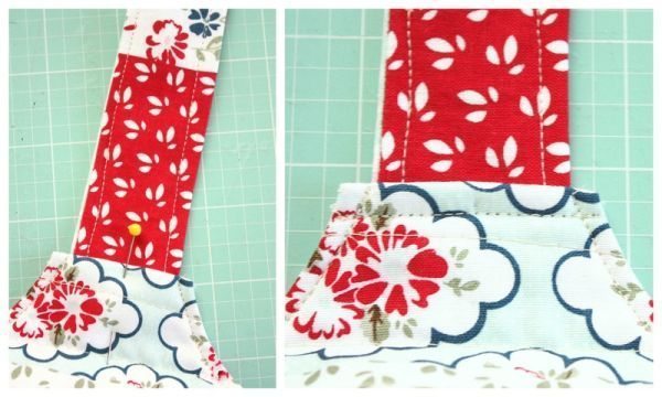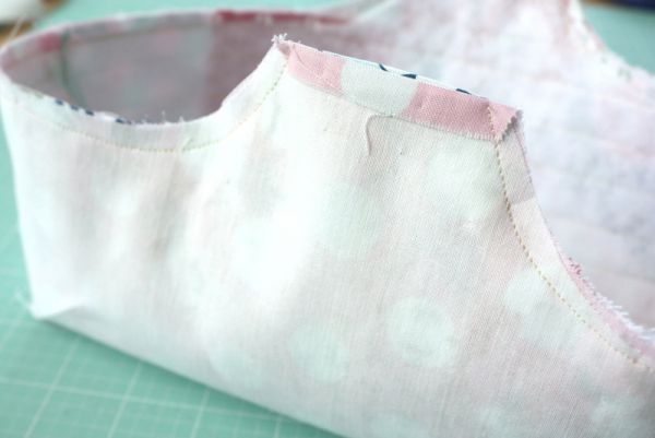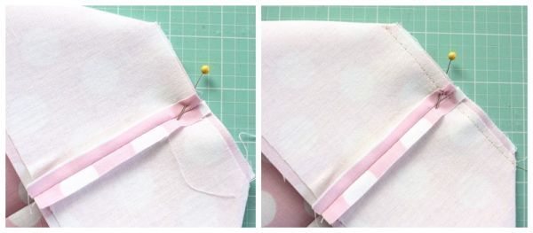 Em seguida, costure a borda, mas deixando abertas as partes da alça. Passe a ferro as aberturas das alças.