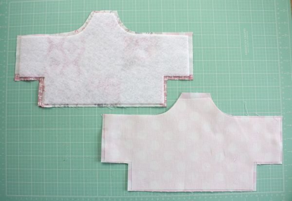 Em seguida, fixe a entretela na parte que será o forro e posicione a manta acrílica ou a espuma fina na parte que ficará por fora.