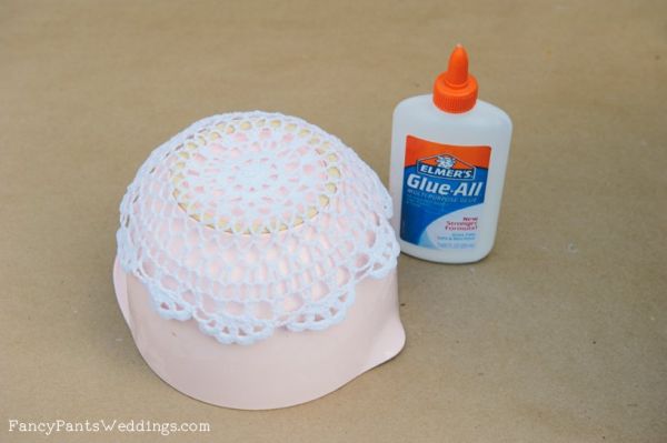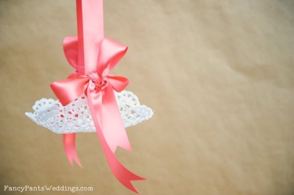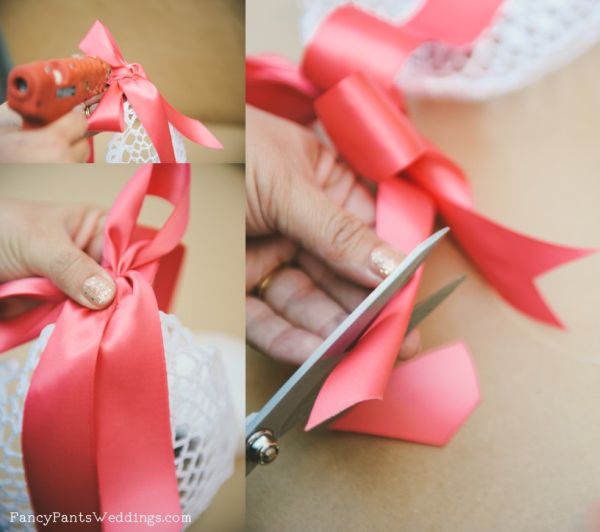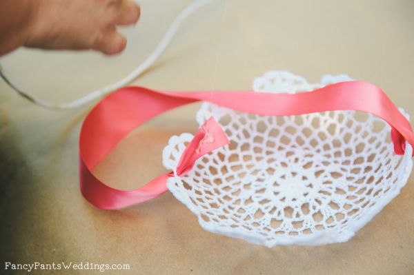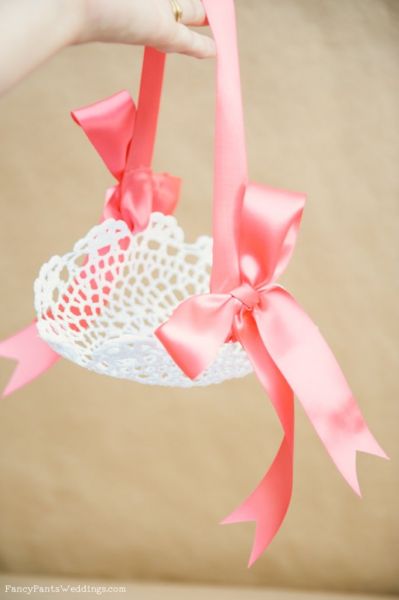 Créditos:http://www.fancypantsweddings.com/lace-flower-girl-petal-basket-diy/