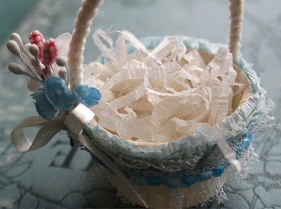 Encha a cestinha com tirinhas de papel crepom.