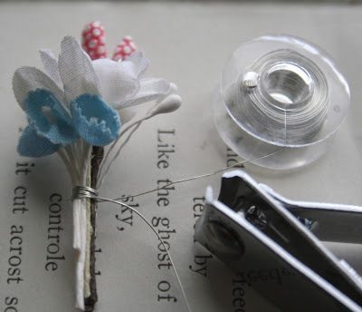 Junte as miniflores e os pistilos que vai utilizar e enlace-as com um pedaço de arame.