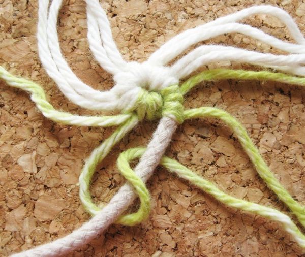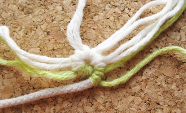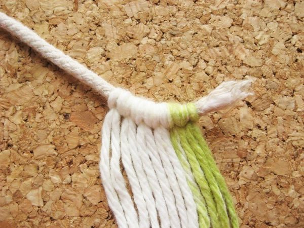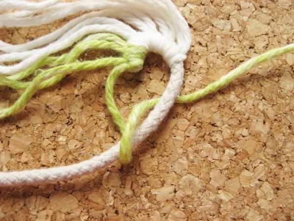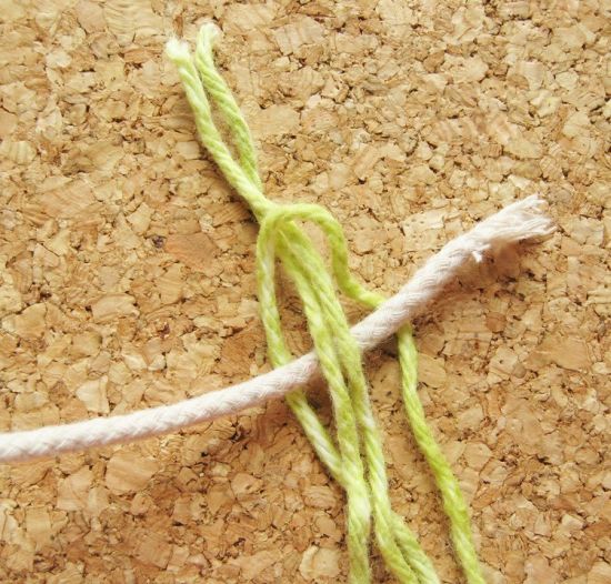 Em seguida, fixe outras cordinhas na corda mais grossa.