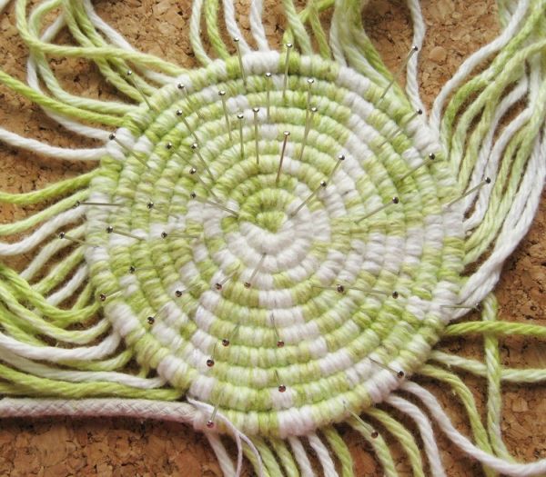 Em seguida, siga trançando a suas cordinhas até chegar ao tamanho desejado para o fundo de sua cesta.