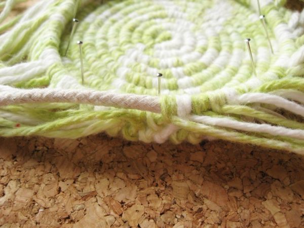Agora, para finalizar a sua peça, quando chegar à altura desejada para a sua cesta, faça as laçadas terminando o trabalho e corte a ponta da corda mais grossa e cole-a de forma a criar um bom acabamento. E está pronto!